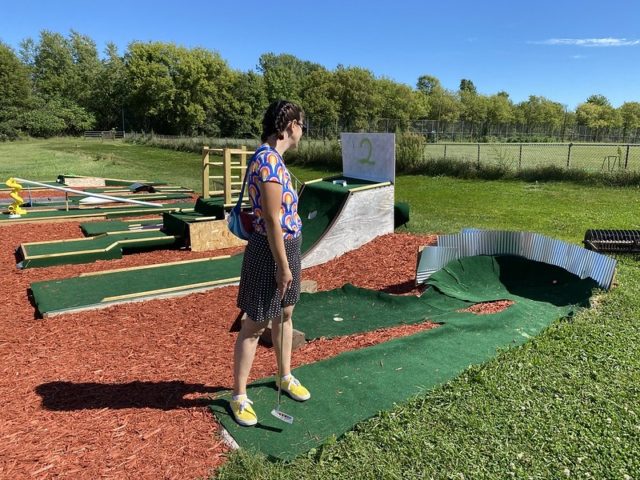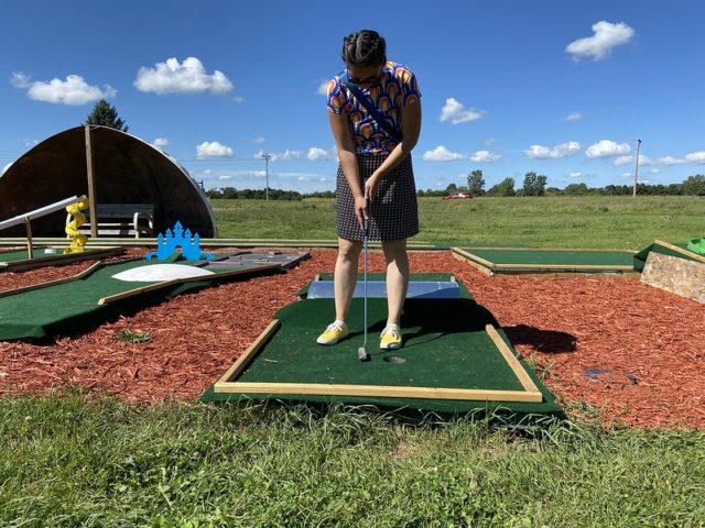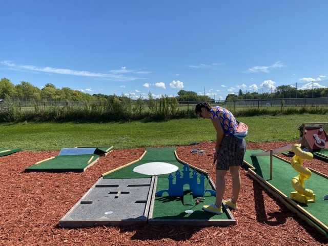 At a first glance, the new 9 hole challenge course’s new turf and fresh mulch are an appealing contrast to the older, original course. Once we got onto the course, we found that some of the wooden structures that were designed for players to stand on felt a bit unstable. There were some creative and fun elements, but the lack of craftsmanship in the hole builds resulted in some frustrating gameplay. We’ll be curious to see how this course holds up through the winter and into another season. While the challenge course nice attempt to add something new, our go-to is still the original 18 hole course.