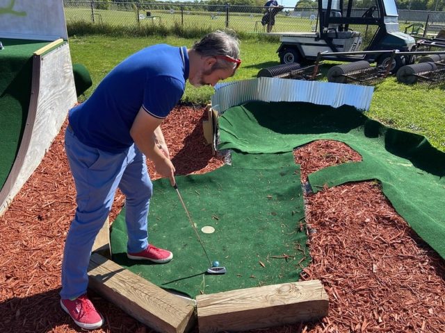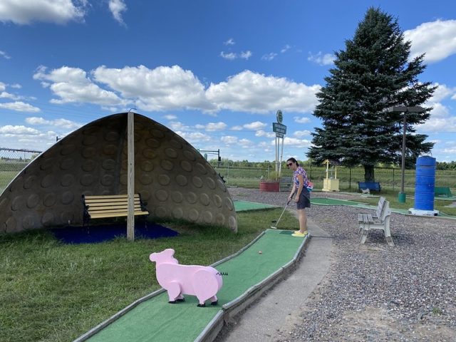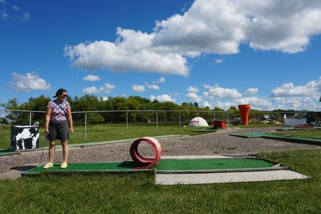 The original course has seen bad days and better days over the years. Its play is varied and fun, with lots of kitsch and many classic tropes such as a metal loop, a windmill, a church, a volcano, and more. During our visit back in the fall of 2014, the course was in good shape as it had been freshly painted, broken holes had been repaired and you could tell a lot of work went into the landscaping. During our visits in 2020, some new elements had been added while some other parts had gone back into disrepair. One new element that we did enjoy was the variety of hand-painted balls to choose from in the clubhouse. There were also shaded sitting areas added to the course, which used parts of an old oversized golf ball as cover. Unfortunately, the Hen House hole which includes a motorized, rotating obstacle was out of order. There was also some new pipe play on Hole 10, but we found it to be a bit frustrating. The original course could definitely benefit from some further updates and repairs.