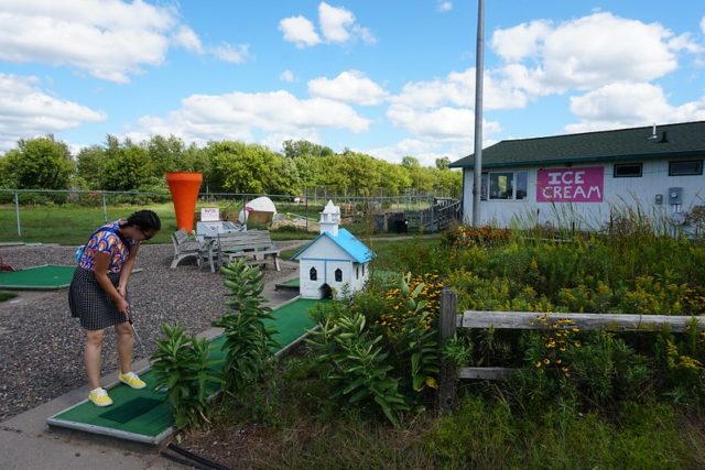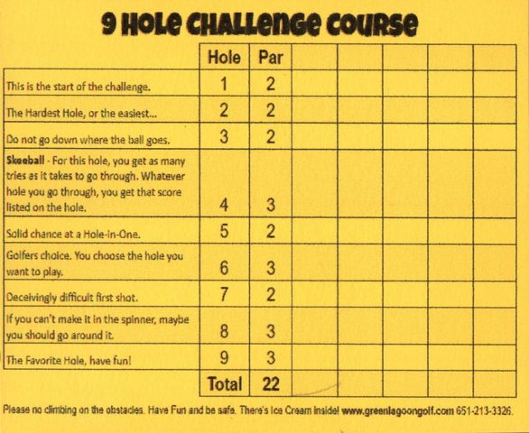 - Bonus final hole on main course collects ball with chance to win free ice cream