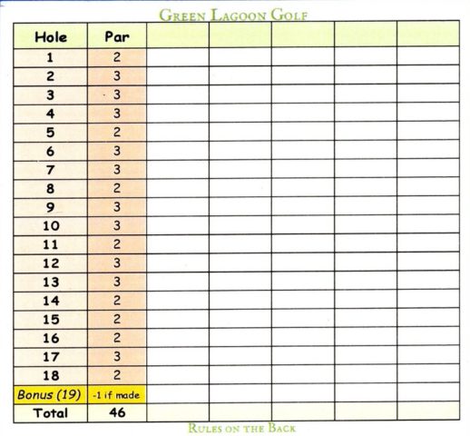 Update August 2024 – This 9 hole course was dismantled and/or repurposed in part on the other Green Lagoon courses. The full 9-hole course is no longer on the property