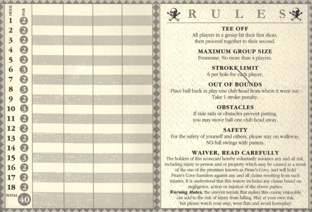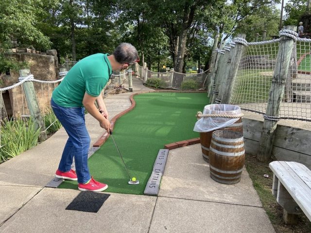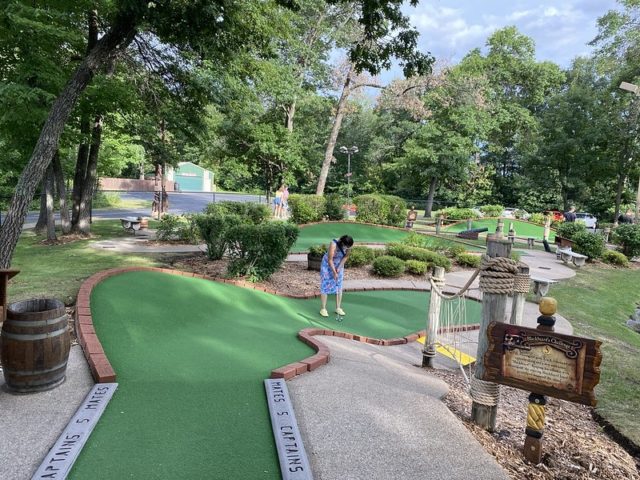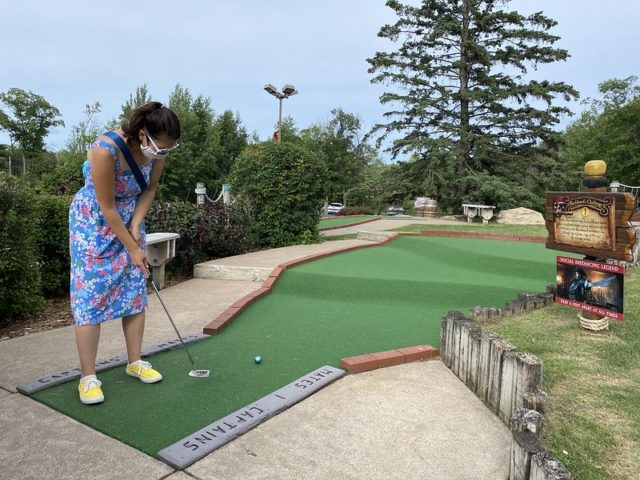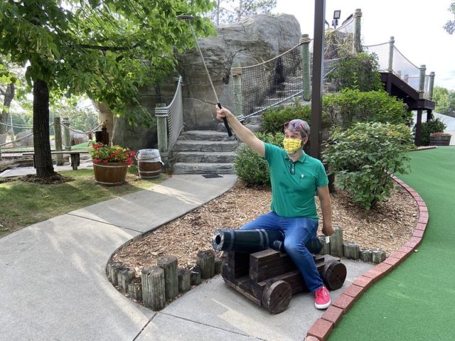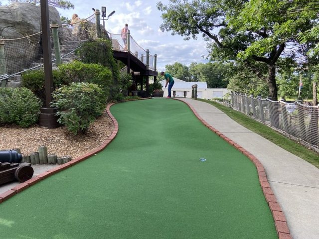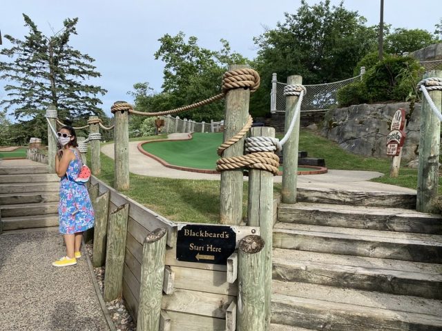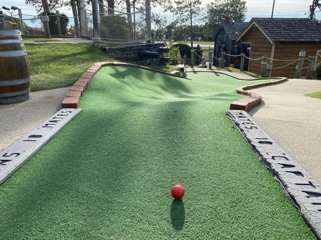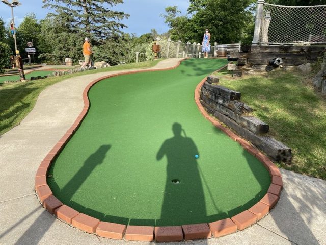 The review of the other half of this mini golf complex holds true for this course. The biggest difference is that Blackbeard’s Challenge doesn’t take you onto the boat. Supposedly, the putting was more difficult on this course but I ended up playing much better on this half of the complex. Caves, waterfalls, sloping greens, and little pirate-themed bits throughout make this an above-average fun-putting adventure. Well worth a stop if you’re headed up north and want a break from the lakes and water.