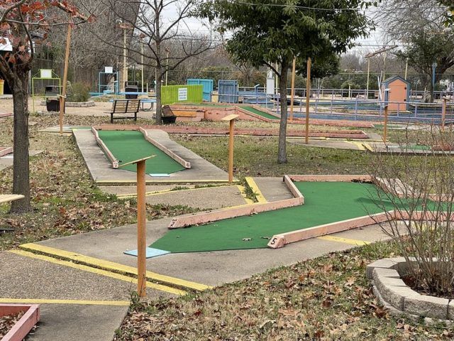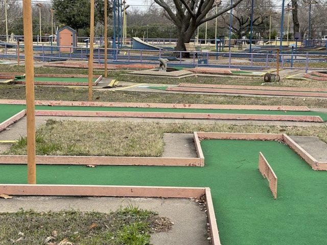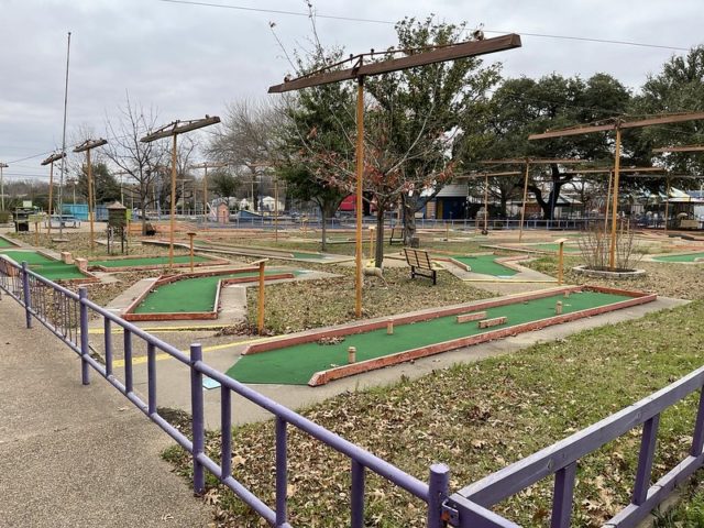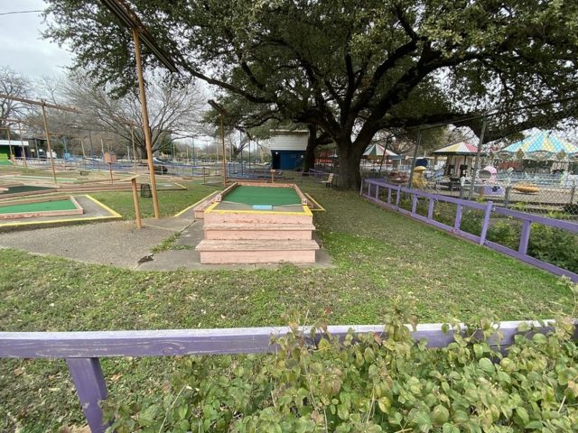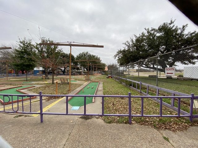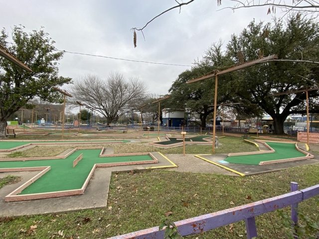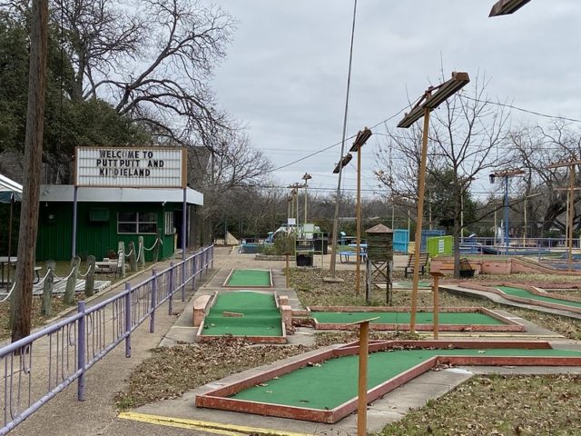When I came across the Waco Putt-Putt course, I proposed that maybe it would be worth the 1.5-hour drive from Austin where we were staying. As our 2019 visit to the defunct Wilson Putt-Putt taught me, I should not fully trust the Putt-Putt Fun Center website as it has included some courses that are not operational. Not finding solid information on hours and days of operations, we opted to visit this course in Waco on our drive back north with our dog in tow knowing we would only get to snap a handful of photos. While I’m always happy to visit a Putt-Putt course, I’m glad we opted for a quick Drive-By documentation. These 2-3(?) courses have seen much better days but hopefully, we were seeing the course in rough shape during off-season and that the people of Waco find some joy putting and playing at Kiddieland. Sadly, we saw the news that Waco Lion’s Park ‘Kiddieland’ set to be torn down, rebuilt in $2 million project but maybe this means some money will be spent to rehab this course? If anyone has updates, send them our way.