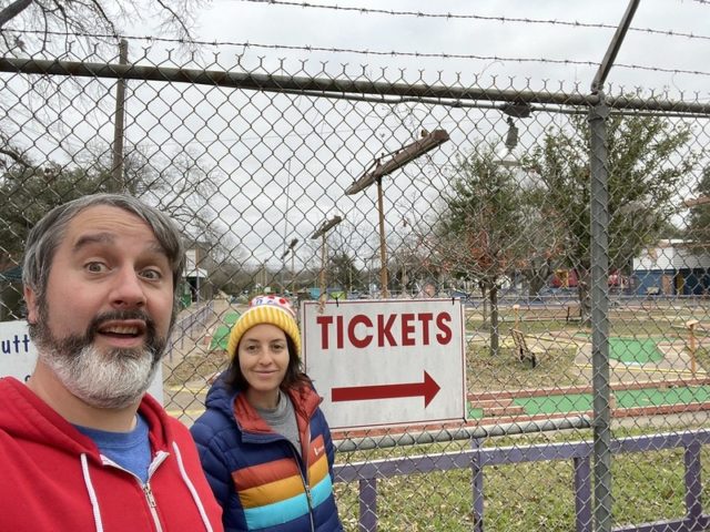 As we were looking for additional mini golf courses to play on our January 2021 Texas road trip, I searched around to see if there may be some Putt-Putt style courses. On several previous stops to the southern half of the US, we’ve sought out these once ubiquitous orange-railed and green felted courses as there aren’t any within an 8-hour drive of our home. I knew Texas was at one point dotted with Putt-Putt branded courses but I was only able to locate a few anywhere near the destinations on our road trip.