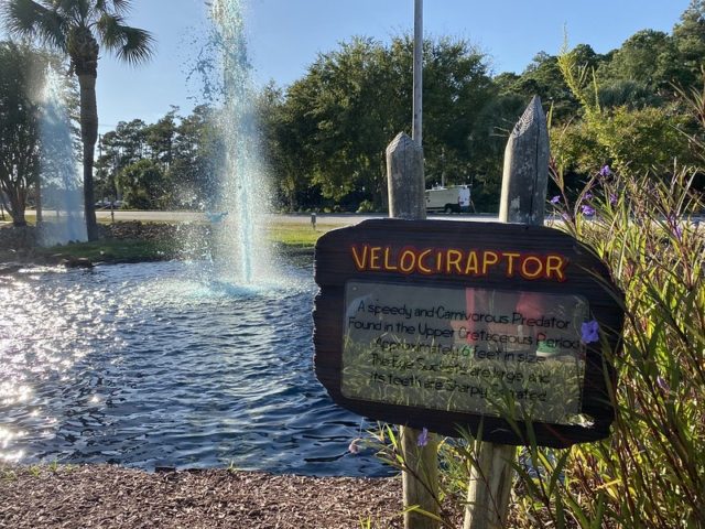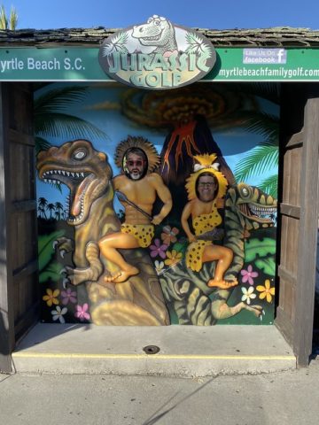 This was the first round of mini golf after the 2nd day of competition at the 2019 Masters. Highlighter, Aaron & Rudy and I traveled south down the King’s highway from Aloha Mini Golf about 20 minutes and passed a new course every 2 minutes of the drive. It was a great introduction to the many quality joints on the south side of downtown but we were in search of dinosaurs and putting. Our journey ended near the Myrtle Beach Airport at Jurassic Golf.