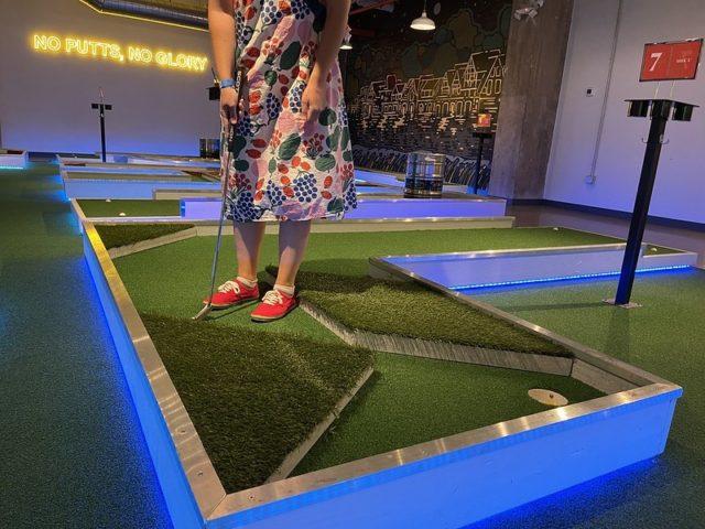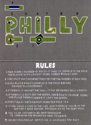 On our vacation out east to the Jersey Shore in August 2021, we set aside a few days in Philly at the front end of the trip. One of the courses on our list to play was Libertee Grounds, a new bar/mini golf venue in the heart of Philadelphia. We headed there our first night in town for some food and of course, putting.