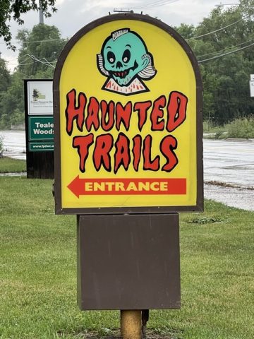 On our Chicagoland area trip to install our Cross-Section Castle mini golf hole we designed and built for the Elmhurst Art Museum’s Par Excellence Redux Front 9, we added a pitstop an hour south of the windy city to pick up a trailer with Pink Putter’s Barter Boat project. In mapping out the drive, we realized that we could pass through the city of Joliet. We had already played the similar spooky-themed Burbank Haunted Trails that was close to downtown Chicago and I was keen to pop by the Joliet location as well.