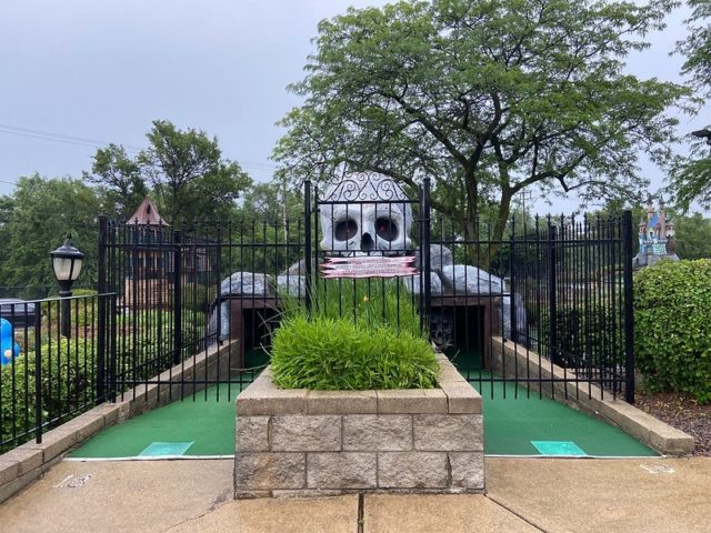Our hopes of playing were dashed by a rainy day but not knowing the next time I’d be through Joliet, I jumped out and documented both courses for posterity while getting drenched. These courses combine numerous eerie features and obstacles that are nearly identical to the location in Burbank. It’s clear both locations are the handiwork of the Castle Golf company. Definitely looks like fun and look forward to getting back to play in the future.
