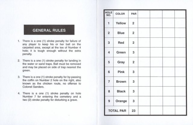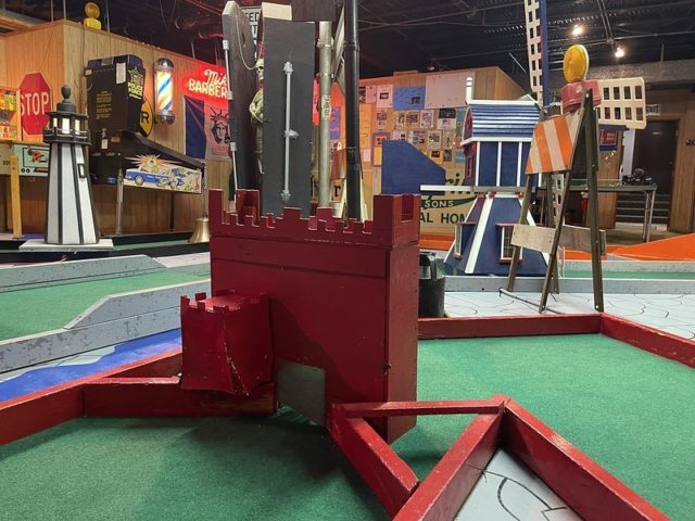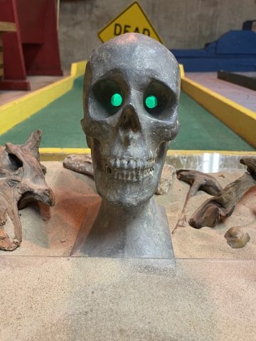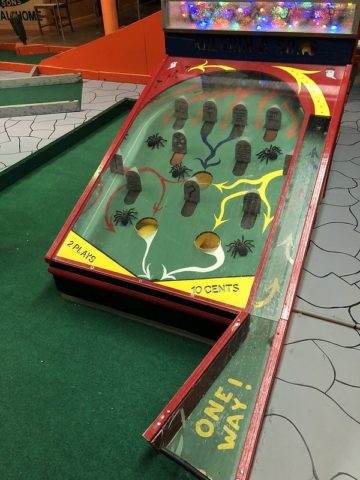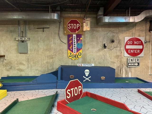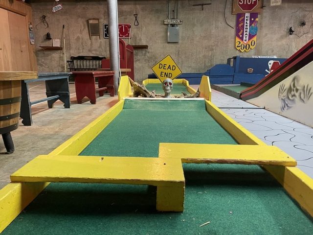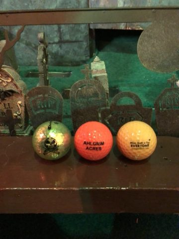 As our photo and video-making abilities improve, there are some courses that just deserve additional documentation because they are so special and/or unique. Plus, there is literally nothing else out there like Ahlgrim Acres. I was fortunate to visit on my own back in 2014 given the challenging logistics of coordinating a stop to play at an active funeral home and my chance to revisit came courtesy of our friend Aaron of O-Street Mini Golf. He had never played any courses in the Chicago area but took the opportunity for a quick visit to play numerous courses in the 2021 M.C. Mini Masters hosted by Holey Moley Season 1 champion Mick Cullen. In addition to competing, Aaron had a handful of extra hours to visit other excellent Chicagoland courses, and top of Aaron’s list to play was this one-of-a-kind haunt in Palatine. Aaron talked to the funeral director and was able to squeeze in an appointment to their rec room before a funeral early on a Sunday morning.