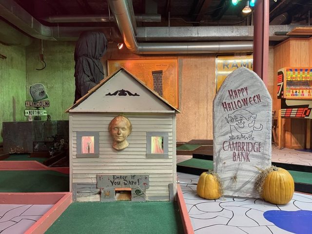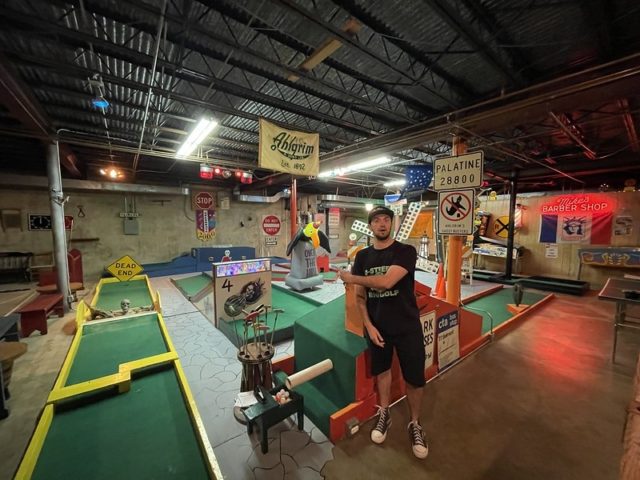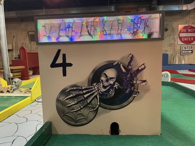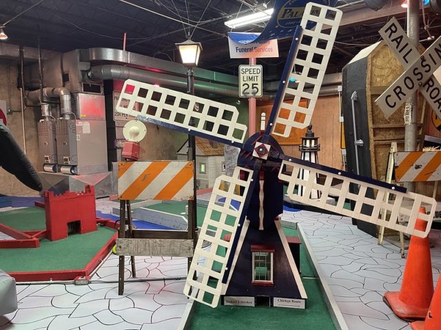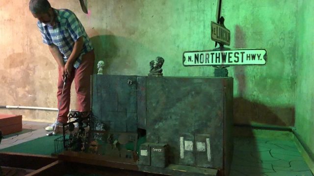 I’mmmmmm baaaack!First reaction of Aaron from O-Street seeing this courseLove that there is an arcade, shuffleboard and more for the community to enjoyHonored to have our sticker displayed on the wallHole #1Hole #2 – Confirmed wooden case was used for transporting a coffin via trainHole #3 – This guillotine is still one of the most scary obstacles I’ve faced off againstHole #4 – Love the backside of this oneHole #5 – Windmill and bonus of -2 strokes if you make it underneath the blades through the narrow openingHole #6 – Creepy haunted victorian house that is tricky to navigateHole #7 – Watch the O-Street video below to see how many strokes this hole can tack onto your score if you’re unlucky enought to fall into one of the gravesNot easy to putt with this guy looking over your shoulderHole #8 – Traditional lighthouse with clever painted water hazard that adds strokes onto your score if you pass through.Hole #9 – Narrow passage uphill that takes you to a pipe to the finish or all the way back. Maybe the scariest putting hole on the courseThe light up eyes in the motuary school skull is a fabulous touchFrustrating pinball shot on #4 is so tricky. Not convinces, what both Aaron & I try to best this oneO-Street, Algrhim, & A Couple of Putts all hanging out at the graveyard of Hole #7Oh no, Aaron and I have to competeWho will win our match?! Watch the video belowWhen in Chicago, you get deep-dish pizza! It was so hot out that we opted to eat in the airconditioned confines of my car after finishing our play.Appears the windmill in the parking lot is undergoing repairFound the parts and look forward to seeing the windmill back at full-strength