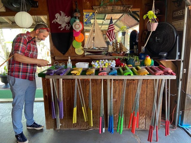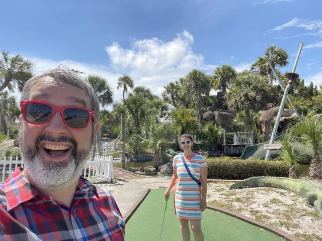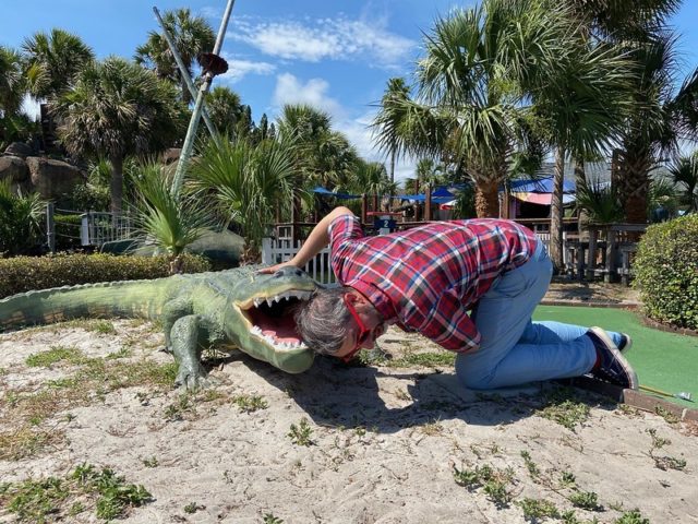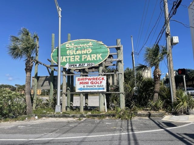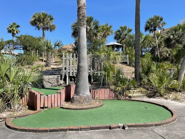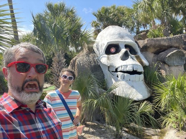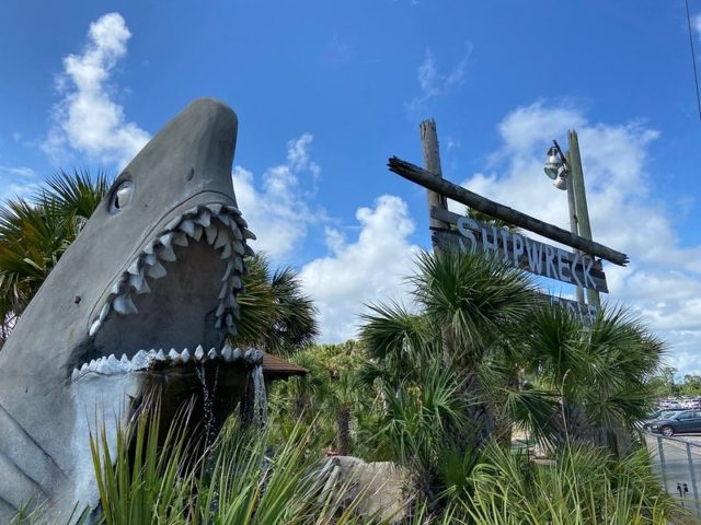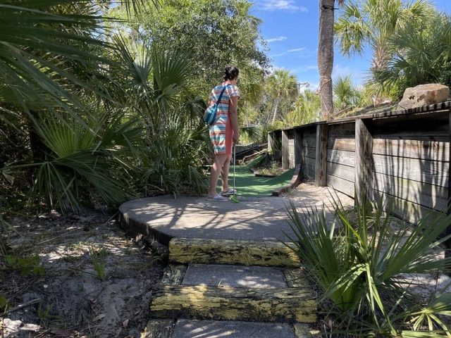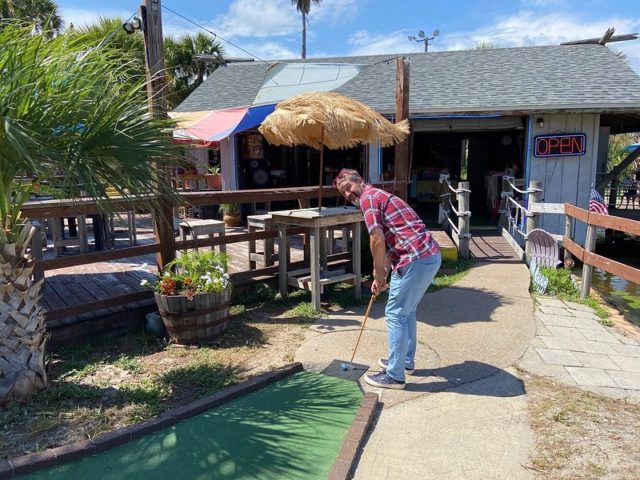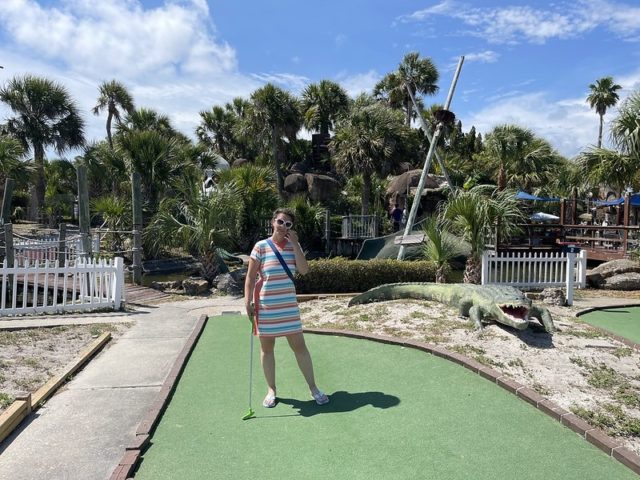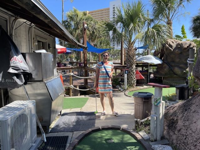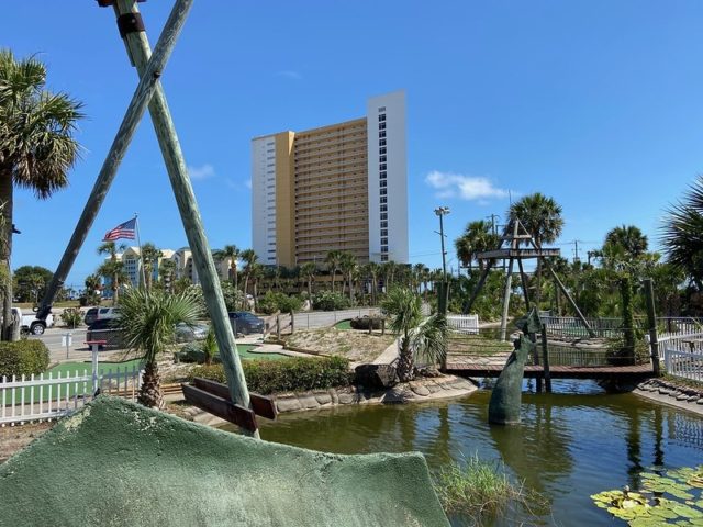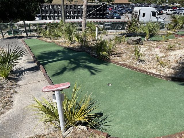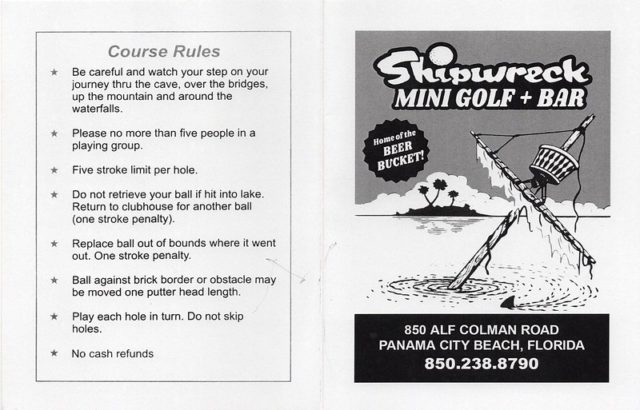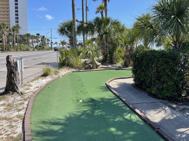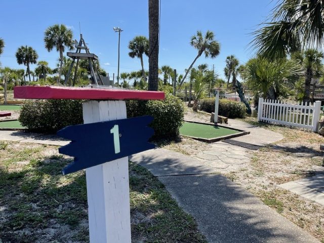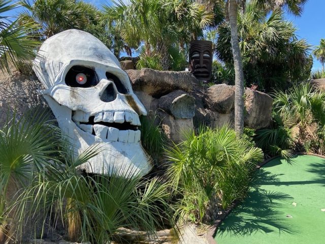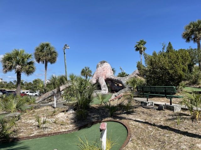 After a dose of the top mini golf destination in Panama City Beach in Goofy Golf, we headed out into town with a few hours to spare to see what other options were available for putting. We had noted a few options that looked particularly interesting and Shipwreck was on our list due to the photos of oversized sea creatures that looked like roadside attractions from the last century. We could see signage from Goofy Golf and only had to drive around the corner to land at yet another classic miniature golf complex with multiple courses from the previous century.