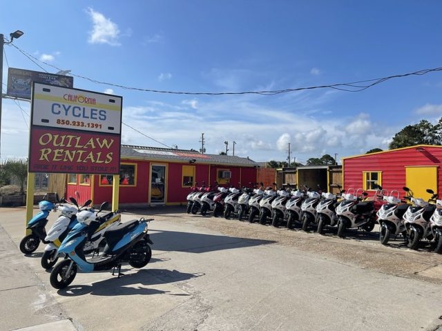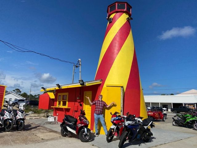 When researching mini golf of Panama City Beach, we came across some information on roadarch.com about a place that was once known as Beacon Golf. Although this course has been long gone, the lighthouse feature that was used as the clubhouse/office as well as remnants of the first hole both remain on site. We couldn’t find an address or additional information, but we did keep our eyes peeled for the lighthouse and sure enough, we discovered a business called “Outlaw Rentals” on the site of the former Beacon Golf at 8500 Thomas Drive in Panama City Beach.