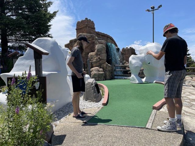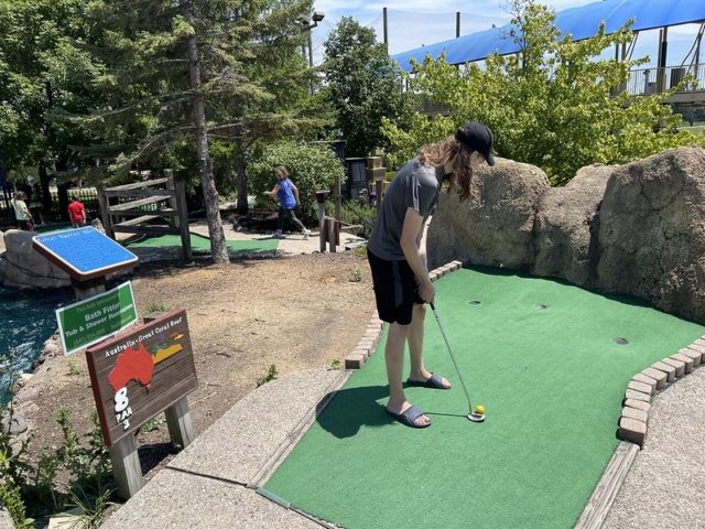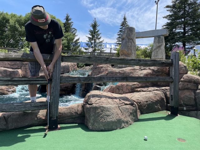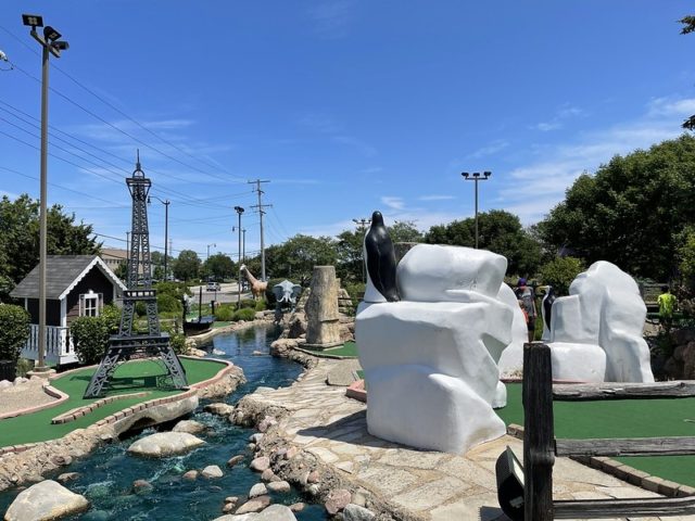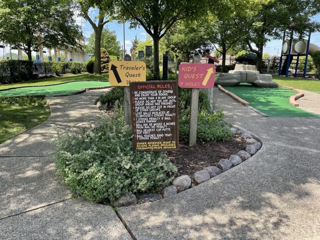 This course should be a hole-in-one like a similar internationally themed Around the World in Lake George. The scale of the environments and obstacles are immersive and impressive. There is a good variety of gameplay and large greens to maneuver towards the cup. Even the little details like the wheelchair accessibility on hole #1 and signage for each environment are well executed. The adjacent 9-hole course, which I’ll review separately later, is an incredible compliment and has some equally unique features. My biggest gripe with this course is the condition of the greens and pipes. When I played in 2021, it was obvious right away that the turf was near the end of its life, and given the size of the holes, it really made play frustrating for all skill levels. A number of the holes had pipes that you had to use to get from one part of the hole to another that was broken, didn’t work well, or didn’t reward skill shots. Heck, I had a ball enter a pipe and it never came out. Who knows where that ball went. As of the time of the review, I was told by Mick that the course is in even worse shape in a few places that impacted play. I’m excited to play it again as part of the 25th M.C. Mini Masters for all of the many positives mentioned above and hold out hope that the operators of the course manage to fix up the handful of things that take away from the fun environments.
