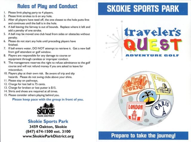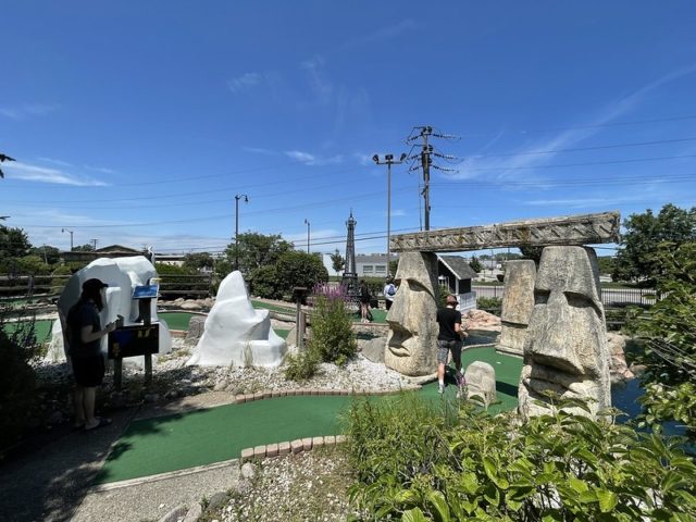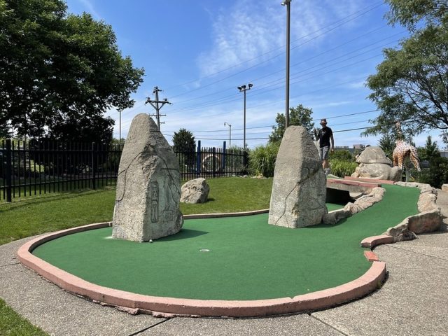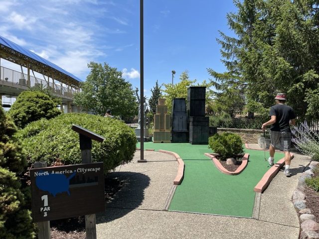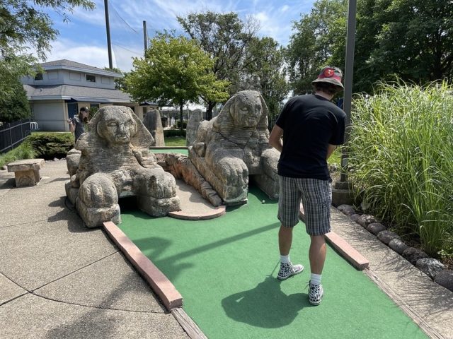 This course was brought to my attention by fellow Season 1 Holey Moley alum Mick Cullen. When I was initially not going to be able to make the 24th annual M.C. Masters in 2021, I made a plan to make a mid-summer trip to the greater Chicagoland to combo a visit to the opening of the Elmhurst Museum course with a buffet of miniature golf. I allotted one day to play a number of rounds with Mick and his son Xavier. Two courses on our docket, Novelty Golf and Par-King, were all-time faves I was thrilled to get to play with the two of them. Mick had an additional under-the-radar course he was eager to introduce me to. He mentioned there was a lesser-known global-themed course in Skokie that he had not played in a while but thought I’d enjoy. I had not heard of it previously but after looking up photos online, I was excited to explore this adventurous course.