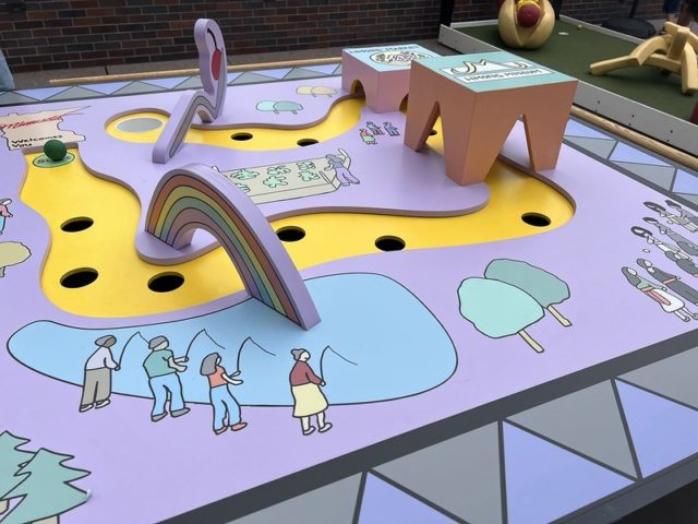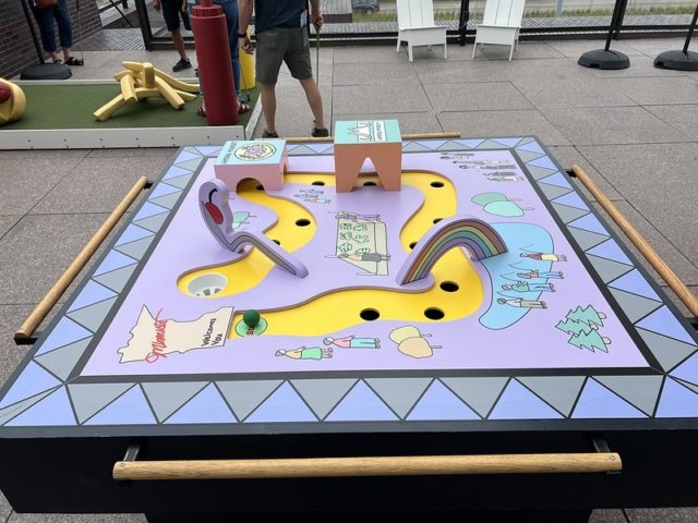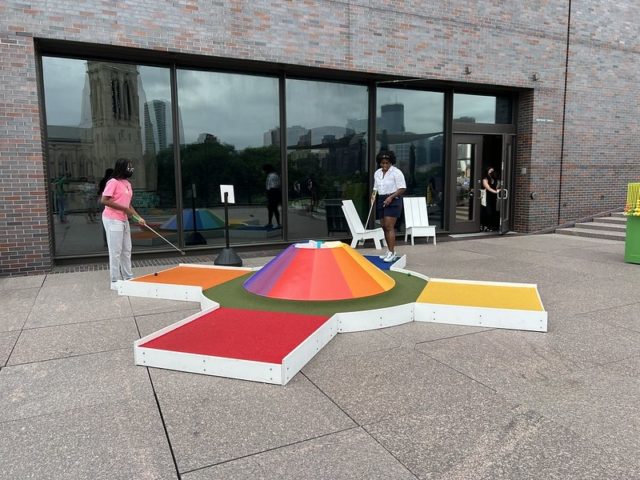 This is the 11th iteration of the artist-designed mini golf course the Walker. We’ve reviewed most of the years between 2013-2021 and both The Pink Putter and I played the 2008 version of the course before we actually met. With the opportunity to play again this year, we were eager to see which holes from previous years returned and to play the new hole added.