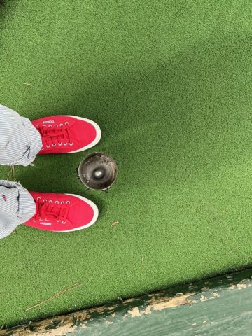 The spectacular volcano hole that starts 20 feet above the cup a little over halfway through the Lagoon course is what brought me here. This massive turf hill with white turf inset to replicate lava can be played through a pipe inside the mountain or down the steep paths. Sure, the gameplay on this hole is unpredictable but the excitement of waiting to see where the ball ends up is thrilling. I would have been happy just to give this single spectacle a whirl but I was impressed by the entire course.