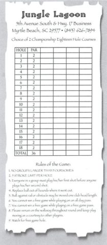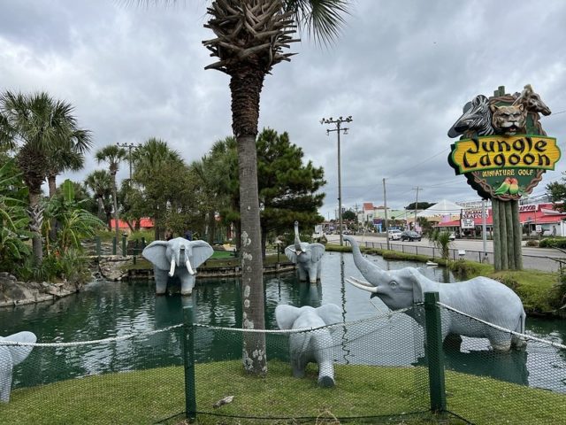 The day after finishing the 3-day 12-round 2021 USPMGA Masters I had an afternoon free to myself as everyone was heading home earlier than me. My waking hours for the previous 6 days had been occupied with endless amounts of mini golf in the capital of mini golf with extra time being spent on the 3 courses featured in the tournament. But yes, mini golf was still on my mind. There were a number of courses I had not played this trip or in my previous trip to Myrtle Beach in 2019. I only had a few hours and based on the photos in the classic Miniature Golf book by John Margolies and what I could see from King’s Highway, Jungle Lagoon was on the top of my list.