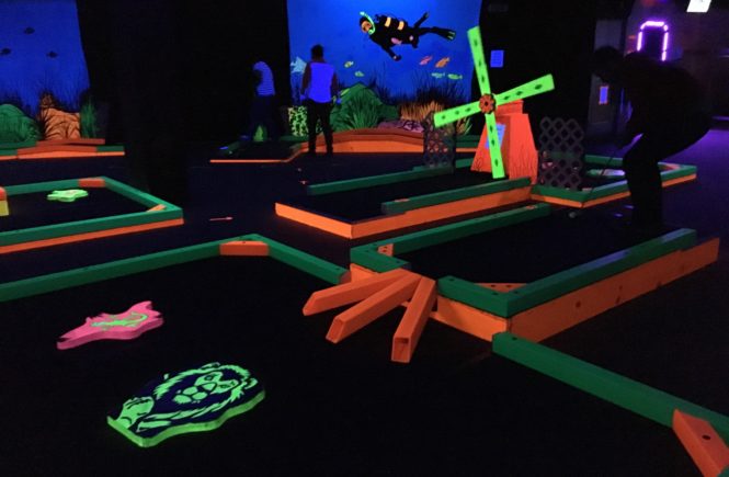 - The first course I’ve seen brag about how quick it takes to play: “Glow in the Dark Put-Put Golf. 10-minute experience while you wait”