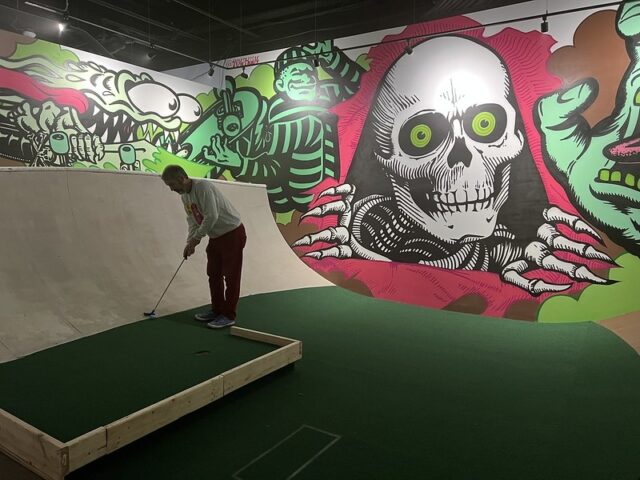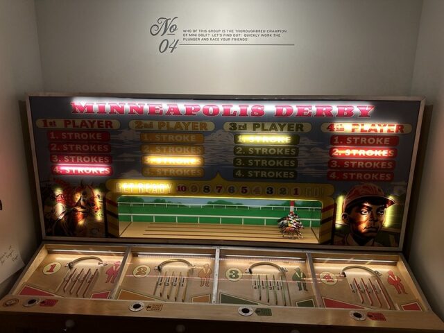 The whimsical, eclectic, and fantastical 9-hole course at Arts + Rec is in rare air for pushing the creativity of the game of mini golf. Chris Pennington learned from his previous mini golf endeavors at Can Can Wonderland and has helped bring to life a menagerie of themed environments that you can explore with a putter and ball. Each hole has a detailed tableau that rewards those who investigate the spaces fully. There is a massive skatepark bowl with a nod to the legendary Bones Brigade. A waterfall that replicates classic Hamms beer signs. An immersive sauna with sound effects. A horse racing-themed hole that replicates a midway carnival game and extends into a larger room that repurposes elements from a long-time family-owned saddle shop that recently closed in Uptown. And it all starts in a functioning record store filled with posters and a spinning turntable hole. I’ve only been there twice but I’m certain that each time I go I’ll find a clever little reference or a tiny detail that I had previously missed. I expect that there will be tweaking along the way to add to and improve the gameplay and immersive experience. Honestly, my biggest complaint is that there aren’t more holes at Arts+ Rec. I promise you haven’t played a course like this.