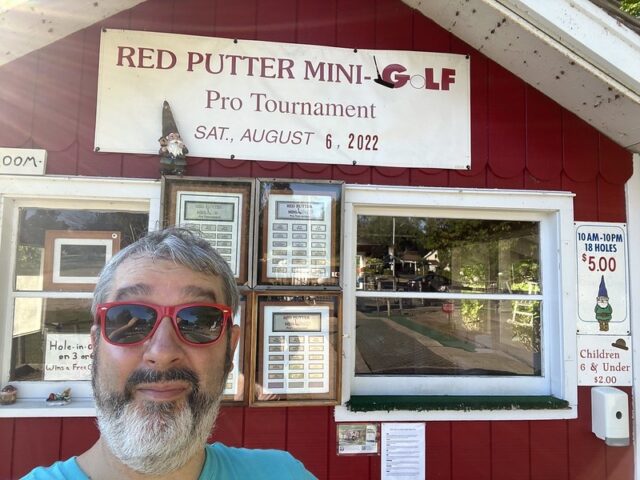 For many years, the Red Putter in Door County, Wisconsin had been on our list to play. It was a charming family-run course that is a community asset in a bustling summer vacation location. With help from a co-worker for last-minute lodging options, I took the 5+ hour road trip to compete in the 20th Red Putter Mini Golf Pro Tournament. I qualified for the tournament and practiced enough to finish only 10 strokes off the league in a 3-round tournament. No trophies or hardware but so much fun that I’m planning to return in 2023.