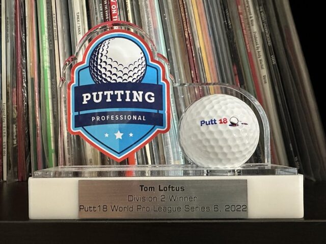 At the start of the pandemic in April 2020, we were invited to check out the Putt18 rollout putting mat game. Through self-filmed live rounds on Facebook, a group of people in the US, United Kingdom, New Zealand, and Australia were able to compete in skill-based putting competitions. After a handful of one-off events, a Putt18 World Pro League began in earnest with seasons that spanned 1-2 months. I slowly improved and in 2022 sub-divisions were created within the league. The first several seasons had runaway wins by Matt Ansley (New Zealand) and David Gomm (UK) and divisions would allow for more winning opportunities. After losing in the final rounds of Series 5, I took home 1st place in Division II.