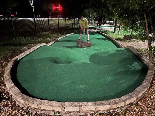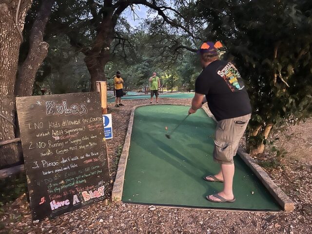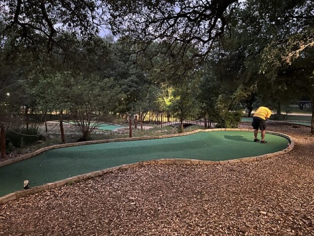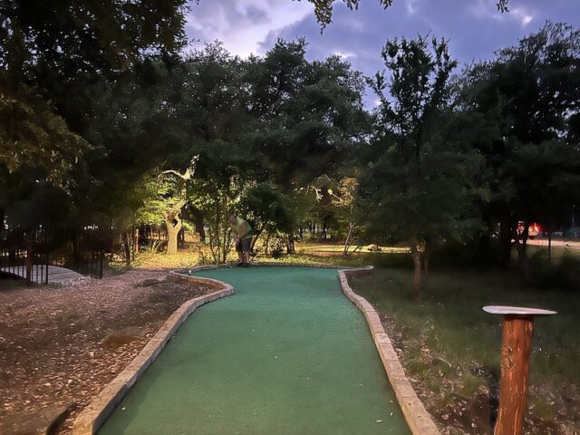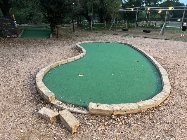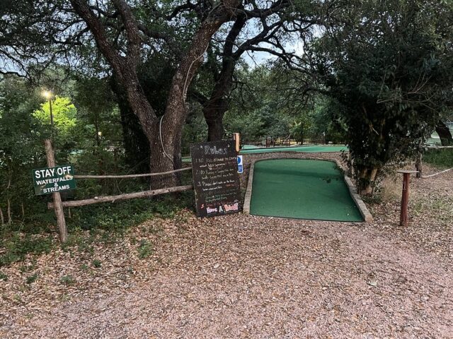 Nearly a year ago, I was deep in the heart of Texas with putting pals taking on every mini golf course we could imagine playing. During an early trip to the Dripping Springs area in 2021, I noted a YMCA campground area that had an adjacent mini golf course. I knew I would be coming back to the area at least one more time and had it on my list to check out. After doing more research, the course was actually not connected with the YMCA camp but instead, it was an independently run outdoor bar and entertainment facility.