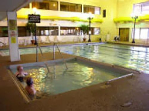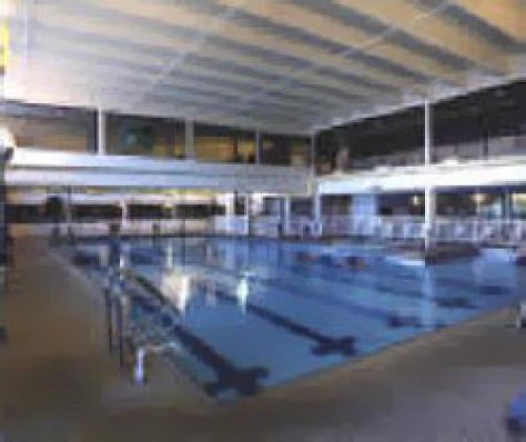 A facility worker hear/saw us and came over to check in with us. We asked about getting into the mini golf course, which he was not able to, however let us know a brief history. Apparently this glassed in area used to be an Olympic sized indoor swimming pool. The white fence near the middle of the course actually blocks off what was the original hot tub, which is still in tact (but not in use). After some further digging, I was able to find some low-res photos of what this space looked like when it was a pool (see below).