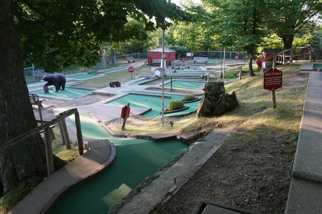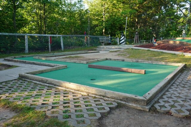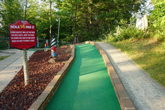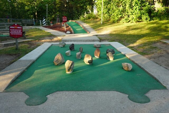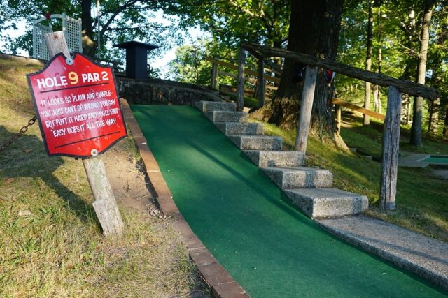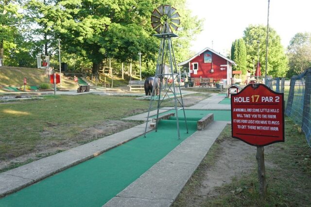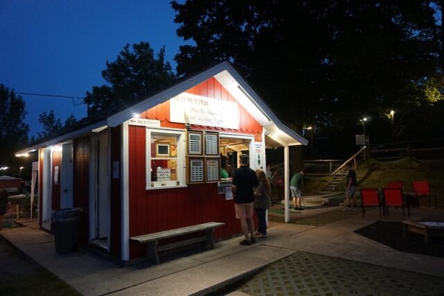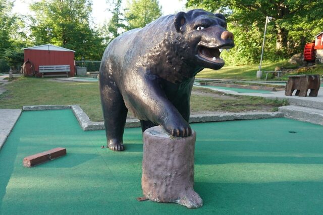 For years, The Red Putter mini golf course had been on our radar to visit and play. After seeing footage of the course in Through the Windmill miniature golf documentary, we were charmed by the course history and that it was home to a New Year’s Day tournament in the snow and freezing winter in northern Wisconsin. We understand the urge to play mini golf outdoors in sub-zero temperatures and knew we needed to cross the border and make the trek across Wisconsin to visit this special place. After years of starting to make plans and opting for other mini golf destinations, I was encouraged by our friends at the 54 Problems podcast who were eager to see the course given it was home to a major mini golf tournament every August.