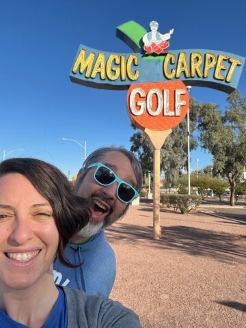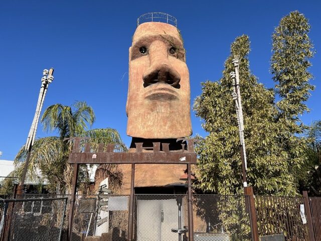 Magic Carpet was a miniature golf course and arcade complex located near Speedway and Wilmot in Tucson, AZ. It opened in 1970 and sadly closed in 2008. It had a lot of the same statues as Goofy Golf in Panama City Beach, FL, including the monkey, the dinosaur, the Easter Island head, and the Sphinx, as well as some giant flowers. The statues were designed by Goofy Golf’s Lee Koplin and built by Michael Kautza and his brother, Andy. There are some great photos of what the course once was over at roadarch.com