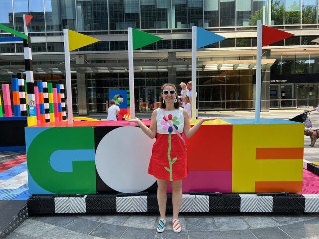 I want to start first and foremost by saying that this course is 100% free to play. You literally just walk up and a worker will pleasantly ask you if you’d like to play, then hand you a ball and putter. They’ll encourage you to jump around holes when it’s busy. There is no doubt about it, this course is worth way more than its price of admission. While small in space, it makes a big punch. Bright, poppy colors combined with fun patterns and compact, yet clever game play make for a fun contrast to the surrounding concrete and modern skylines of the business district. The holes are ace-able, making it accessible for players of all ages. They are also mini playgrounds, proven by our witnessing a little girl crawling through the colorful arches on hole 8 as if they were the gates to another world. If you find yourself in London and the world is lucky enough to see this course come back for a third summer, definitely go out of your way to make a visit.