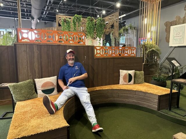 Back in 2019, Scott Gadd reached out to A Couple of Putts because he had heard about our work on a course that we designed in Durham, North Carolina called Bull City Mini. He shared with us his idea to open a mid-century modern styled bar / mini golf course a few hours away in Charlotte. We both love the mid-century modern look and were intrigued to see how that course would come to life. Later in 2019, I was headed through North Carolina after the 2019 Masters of Mini Golf and checked in with Scott to see if they had progress on the build-out of the space. The timing worked out to visit the space for the future course and meet up with Scott and the person who would be designing the whole facility as you can see photos below.