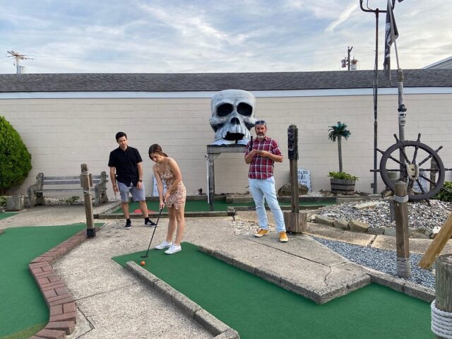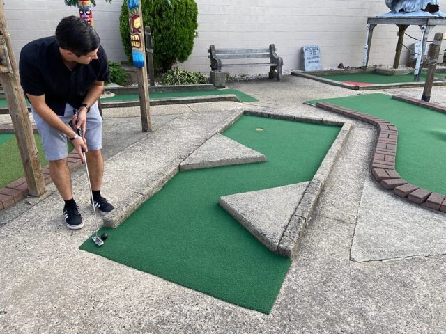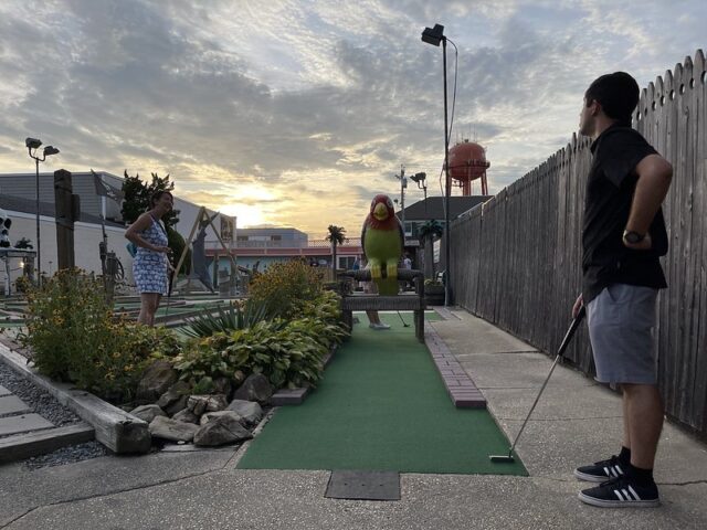 In August of 2021, we headed to Long Beach Island on the Jersey Shore to visit family and play in the O-Street $1000 Tournament in Ocean City. We spent the week enjoying the beach and of course, playing all of the mini golf courses on the island. On this particular evening, we met up with O-Street Mini Golf friends Aaron and his then fiancee, now wife, Moira Wilson, for a round on both courses at Mr. Tees. You can check out our review of the Victorian Gardens course here.