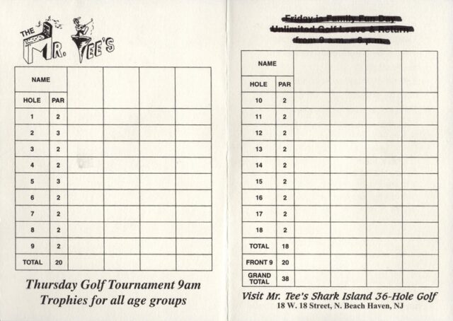 - Mr. Tees LBI Mini Golf Tournaments take place during the summer season on Thursdays. Starting at 9:00am. Award 1st, 2nd and 3rd place Trophies in each age group. Age groups rang from 9 and under, 10-13, 14-20 and 21 and over