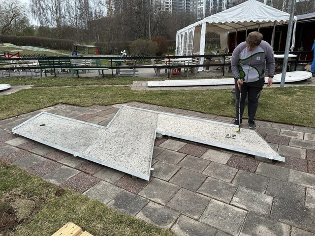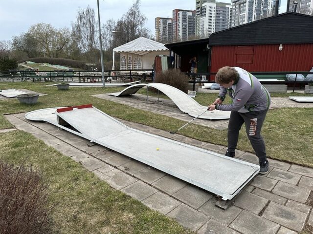 Eternit miniaturegolf is fairly consistent across any competition-approved course you’ll play because these courses are designed to have standard obstacles, lengths, and layouts with an intentionally limited variety of types of holes (also called lanes or bana in Sweden). The goal is that nearly all of those types of courses are nearly identical in the same way that you’d expect a basketball hoop to be at the same height at all public parks and a baseball pitcher’s mound set up at the same distance from the plate. The primary goal of this style of course is competitive play. If you can learn how to play and/or master a course in one facility, you’ll likely be able to quickly learn other courses of that type of course in different locations inside and outside of your home country. In the US, we play on Minigolf Open Standard (MOS) courses that have a wide variety of course designs and layouts that usually benefit competitive players who have regular access to those specific courses. In Europe, they play on standard courses that tend to reduce the home course advantage and it comes down to the player’s mastery of the game and knowledge of how to use specialized minigolf balls on each different lane. All of the holes/lanes are meant to be aced (aka hole-in-one) and top players in major tournaments will regularly achieve a perfect round. You NEVER stand or walk on these lanes.