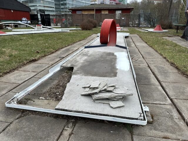 The Solna club is one of the older Swedish minigolf clubs and it’s quite clear that this eternit course is an older build and actively being repaired. Some would see it as a negative to share photos of a course in disrepair but I appreciate that this club putting effort into the upkeep and maintenance of the course. It’s less common than you think. I am eager to see the whole facility again on a future trip to Sweden. I’m not aware of the current state of the course for competitive play but if anyone has any updates, send them our way!