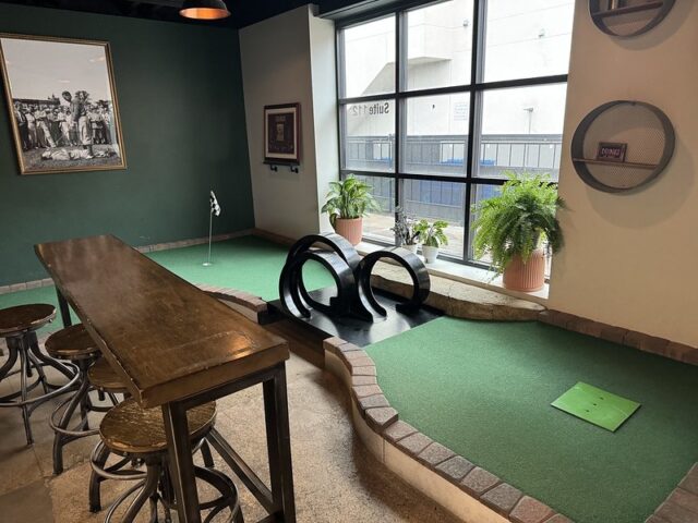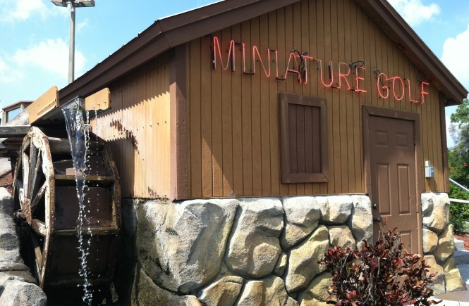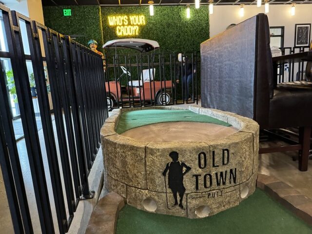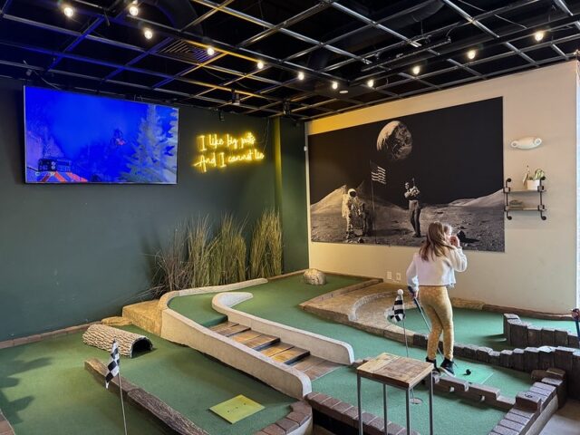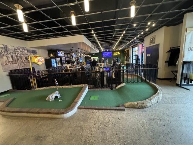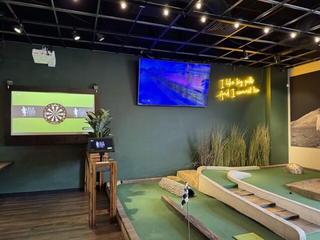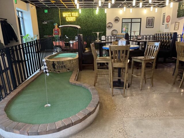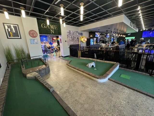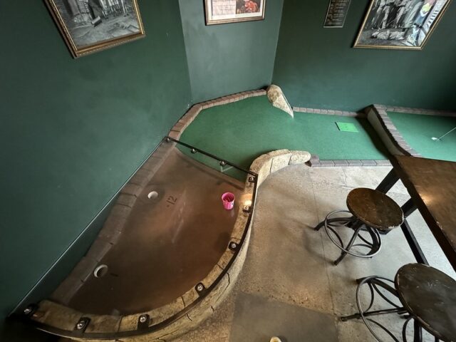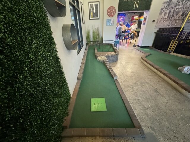 One of the better bar / hang setups at a mini golf course cozy and fun