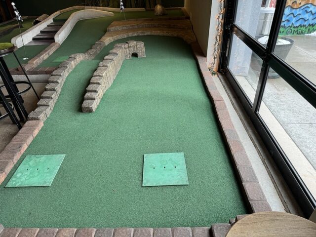 We’ve played several courses built by Cost of Wisconsin. The best versions of those courses come from the people who add their flare or personality to those solid structures. It was clear from playing the course that Dana wanted to try out a few unique concepts in the layout of this course. First, he started with a single outdoor hole on their patio. It has nice curb appeal and it draws you in. It’s followed by a plinko hole, a challenging two-tiered hole, and a triple loop, and finishes off with a chance to wildly modify your score with a challenging shot. All of these take fairly simple and short hole designs and bring it up a level in 9 holes. I was most impressed with how they managed to fit 9 holes in their space while maintaining room for a full bar, darts, and an arcade. My only complaint is that the other half of the course I have not alluded to was just fine. I would love to see a full 18-hole course utilizing the creativity shown on the best holes and would highly recommend this course/bar if you’re in Fort Collins.