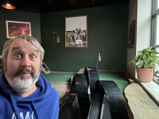 In 2018, we got an email from Dana Snell in Fort Collins, Colorado regarding our work as mini golf designers. We chatted with Dana once or twice and stayed in touch as he figured out the best option for him in building a new course. As the years past, we exchanged messages about augmented reality and potentially hosting a tournament in the American Mini Golf Alliance (AMA). I knew that a trip to Fort Collins would be on the docket on my next trip to the Denver area to see friends. I ended up traveling to Colorado earlier this year in April for the celebration of the life of a friend and had some extra time on my trip to play new courses. I opted to make the jaunt up to Fort Collins immediately after landing in town to check out the course and ended up watching the end of Game 1 of the Timberwolves win over the Sun in the first round of the playoffs.
