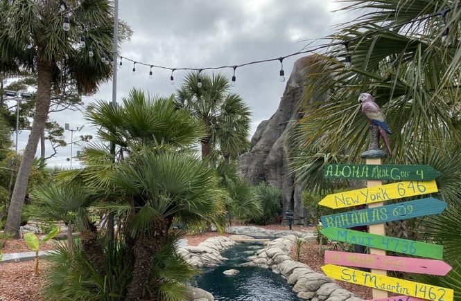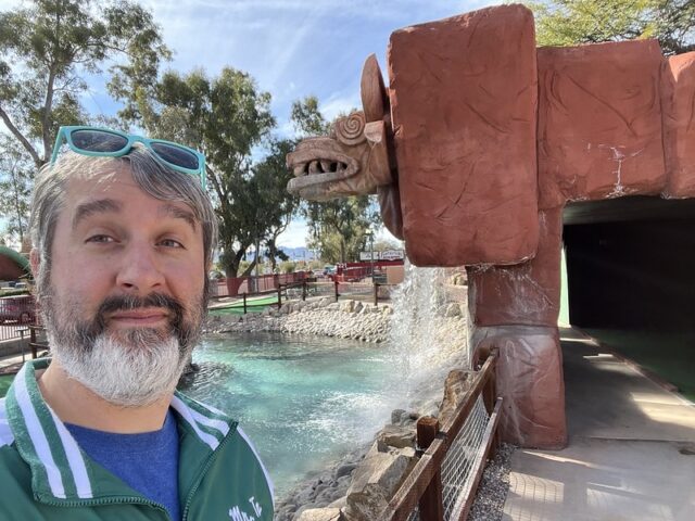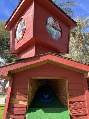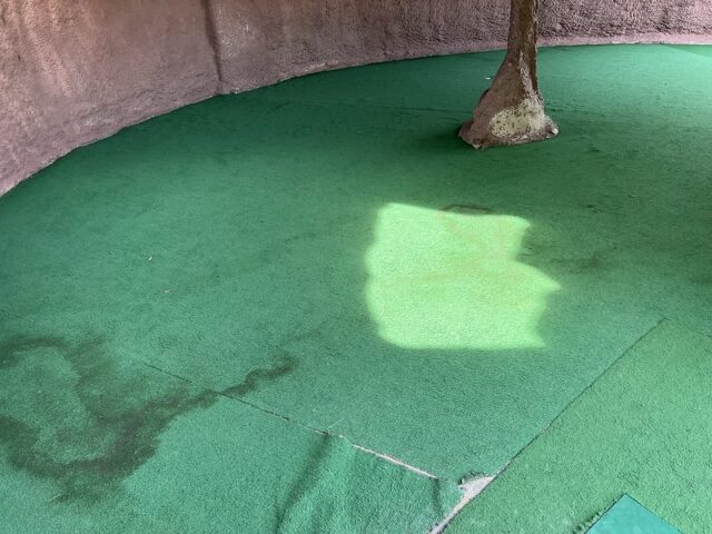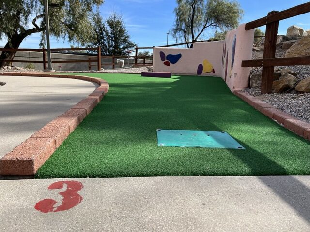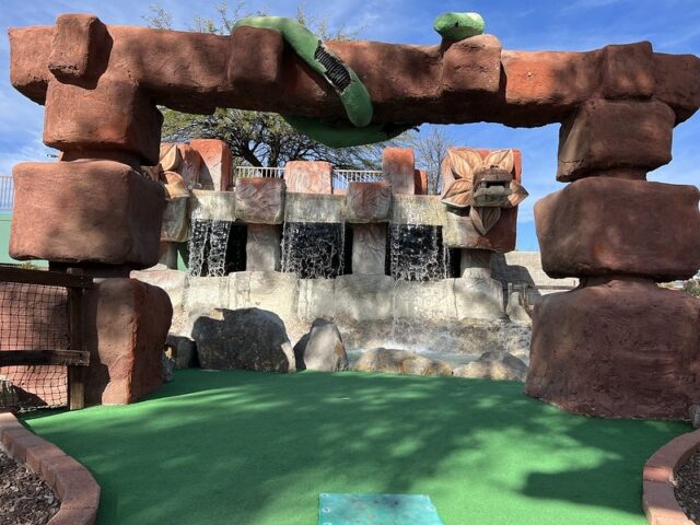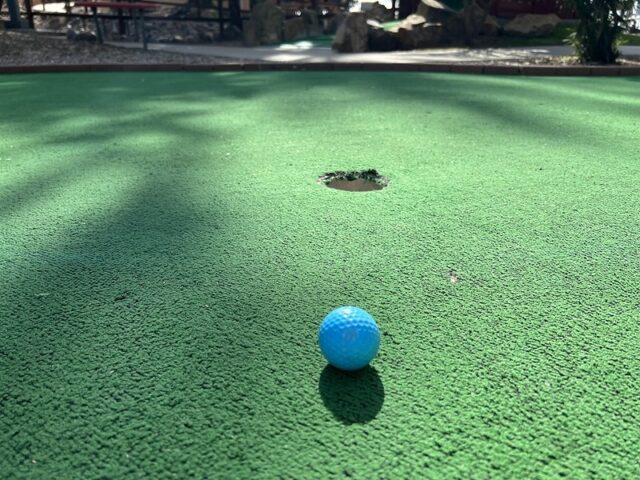 Both of these courses have a bit of a southwestern flare and theme. I loved the immersive elements and am reminded of similar West Coast style courses like Golf N Stuff. The putting areas are massive and there is a good variety of hole layouts where you have to take more straight-forward putts and others where you have to play rebound shots or putt uphill. The caves and water features on the blue course along with the skee ball styled final holes all looked excellent. The big issue with this course was the gameplay. As you’ll see in the photos, the course in January 2022 was in sub-optimal condition. The carpet was ripped and chewed up on both courses. In several cases, it would impact the movement of the ball to the cup. A few of the cups had seen better days as well. A few of the tee-off mats were mangled as well. Additionally, several of the themed environments and characters like the snake on the blue course were badly damaged. In most cases, this didn’t necessarily impact the gameplay but the overall experience would have been so much better had the course been in better condition. If this was a run-of-the-mill course, I would have given this a sub-par review but I feel like the imagination of the course helps keep the course at par. I can only hope that the course operators decide to put in some effort to repair and fix up the facilities as they are much needed for this course to remain playable and average. I would absolutely go out of my way to play it again if they made the repairs.
