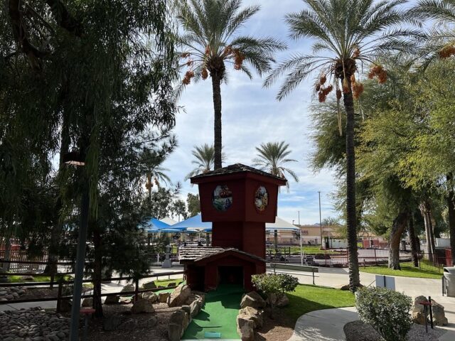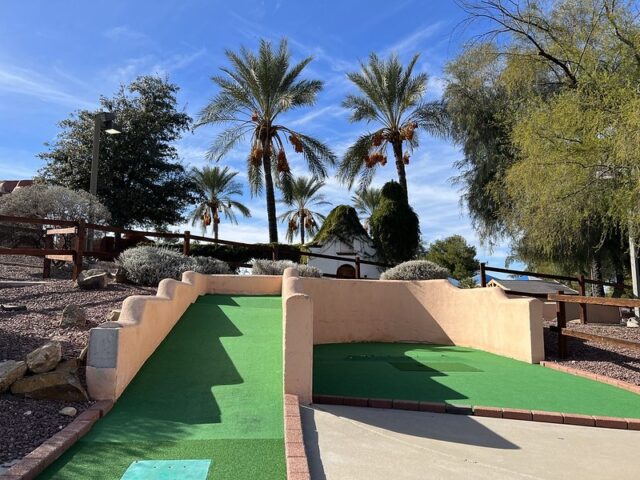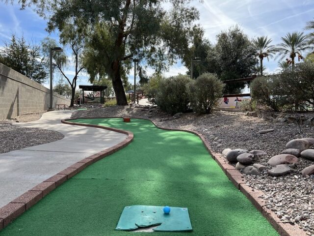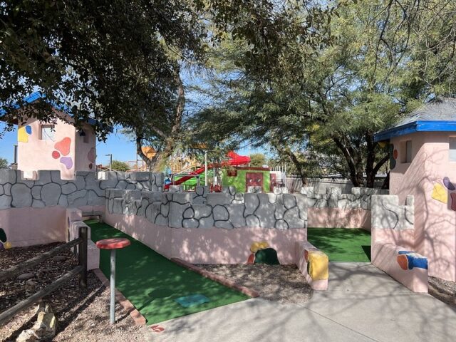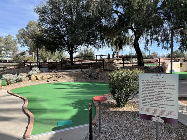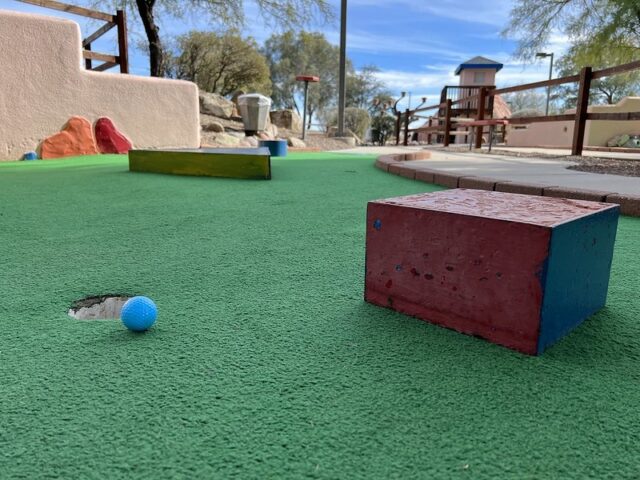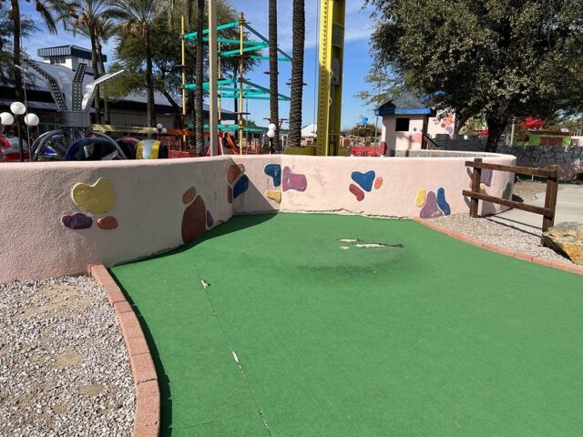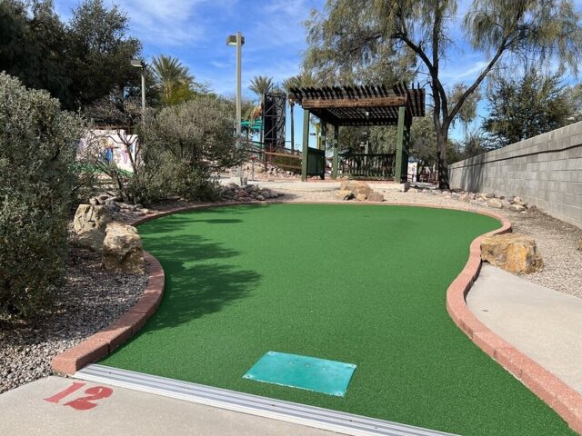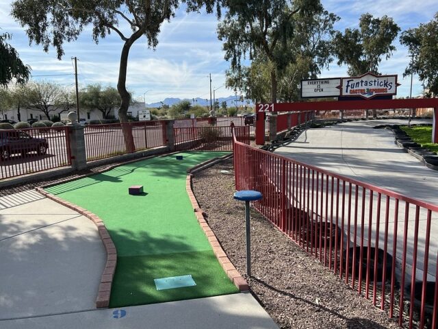 As I mentioned in my review of Triple Play, I was in the Tucson, Arizona area for an extended period and decided to explore all of the mini golf offerings around the area. On the north side of town near the Cataline Foothills, I found a Family Entertainment Center called Funtasticks. From what I could tell online, they had two full courses so I swung on over during the middle of the week when I expected it to be quiet so I could soak in some sun and sink some putts.