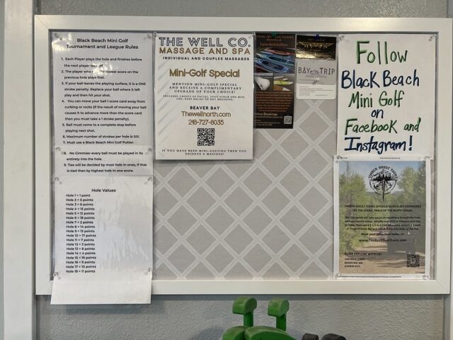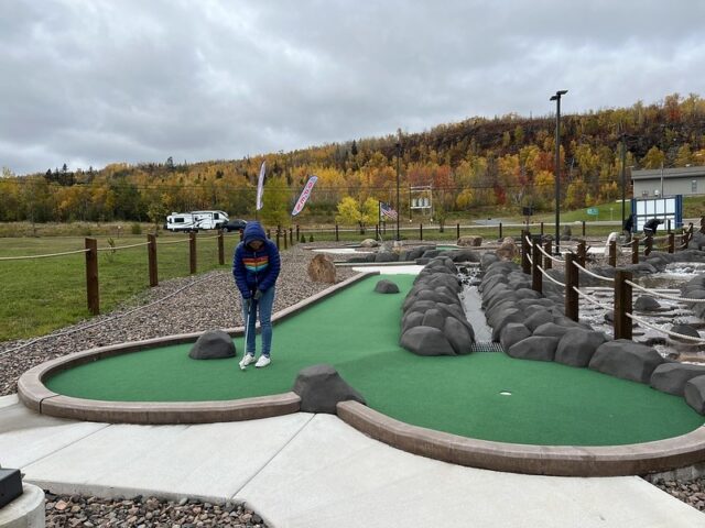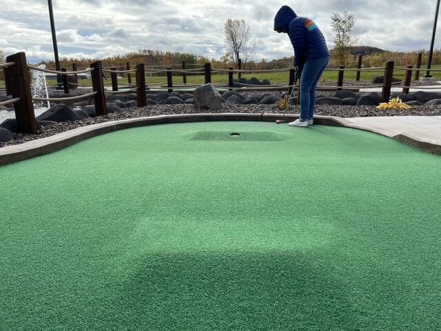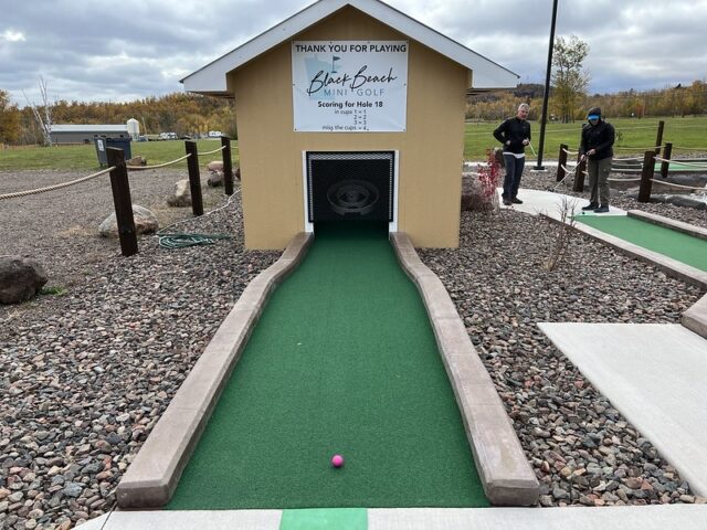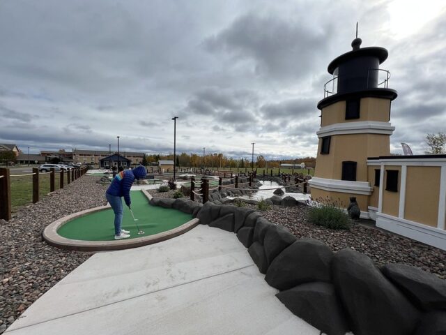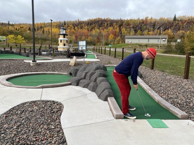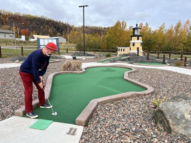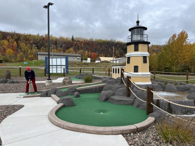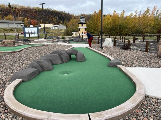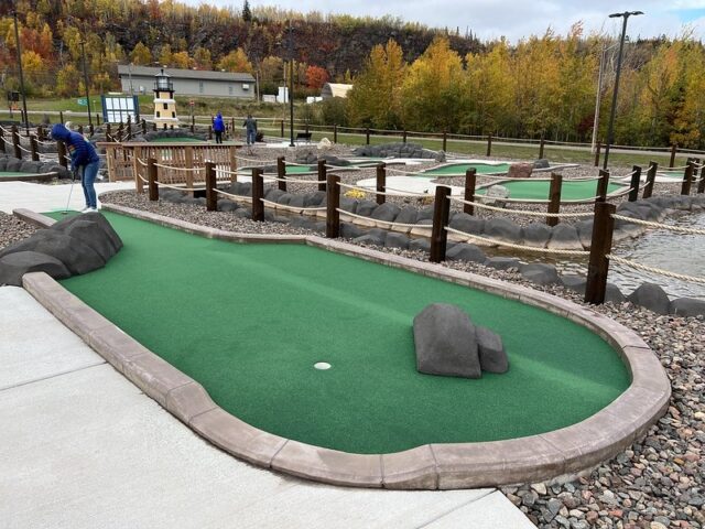 On a jaunt up north of Duluth to see the fall colors, we made it a priority to visit the recently opened Black Beach Mini Golf in Silver Bay. I knew in advance of arriving that the course was built by Castle Golf. I was especially intrigued to give it a whirl as we don’t have many (any?) mini golf complexes built by Castle in the state.