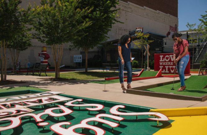 During Robin’s time as an Artist-in-Residence at Hub-Bub, she designed and worked with the community to build a permanent, 9-hole, Spartanburg-themed, free mini golf course on a formerly vacant lot in the heart of downtown. People are encouraged to bring their own ball and putter or to rent them for free (in exchange for a valid ID) from local businesses in downtown including: The Coffee Bar, Growler Haus, The Local Hiker, Dottie’s Toffee and the Paisley Paw.