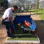 This was the third year A Couple of Putts had been involved with the Walker Art Center’s Mini Golf course. In January 2015, Tom participated in a design charrette with four other artists (Amy, Yousif, Meena and Andrew) with the goal of coming up with ideas for four new holes to be added to the Walker’s now annual mini golf course. Fourteen holes were held over from the 2013 and 2014 courses to fill out the rest of the course. The theme was International Pop (to correlate with a massive exhibit in the museum that summer) and in a matter of three hours, Tom and the others sketched out a number of wild, unrealistic and fun ideas. The Walker Art Center ultimately landed on the four holes featured in the photos above.