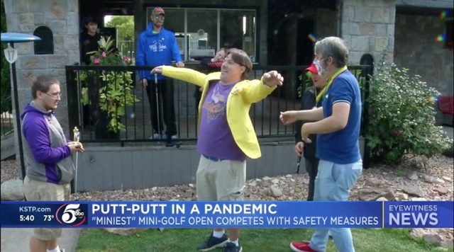 Year one of the first tournament we’ve ever organized was a blast and nailbiter. After two days of qualifying rounds by a bunch of fun people, we ended up with 9 competitors who had the top six scores due to a few ties. These ace putters were invited to the championship round on 9/20/20. A round of 50 by Alan Wilson was the best qualifying round. Seven of the top nine showed up on Sunday morning to compete for the money, prizes, and a chance to put on the wild yellow jacket. You can see the photos and videos of the finale, scores, competitors, and fun below. We’re planning on doing this again and will update acoupleofputts.com/open for future years