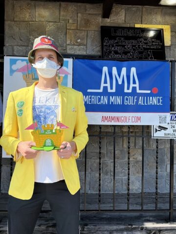 Sunday, September 25th at 9 am: the top 20 players based on their best qualifying score will play a two-round championship to determine the winners. Any ties between 1st and 3rd place will be broken by 2-hole putt-offs on Holes 1-2. If scores remain tied after two holes, the players will compete until one person has a lower stroke than the other(s) on the next hole on the course. If there is a tie for most hole-in-ones, there will be a hole-in-one-only wins playoff on hole #4. Each competitor will have an equal number of opportunities. All other ties for prizes will be determined by the better qualifying round score. If there is an additional tie after bringing in the qualifying round score, prizes at those levels will be split 50/50. All competitors who are American Mini Golf Alliance (AMA) members will receive points toward national ranking based on the current scoring rubric.