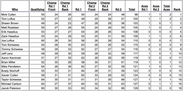 - Mick Cullen landed the only deuce on the winding #13 in qualifying
